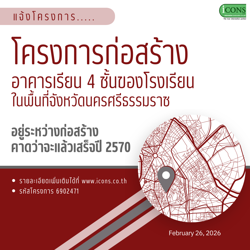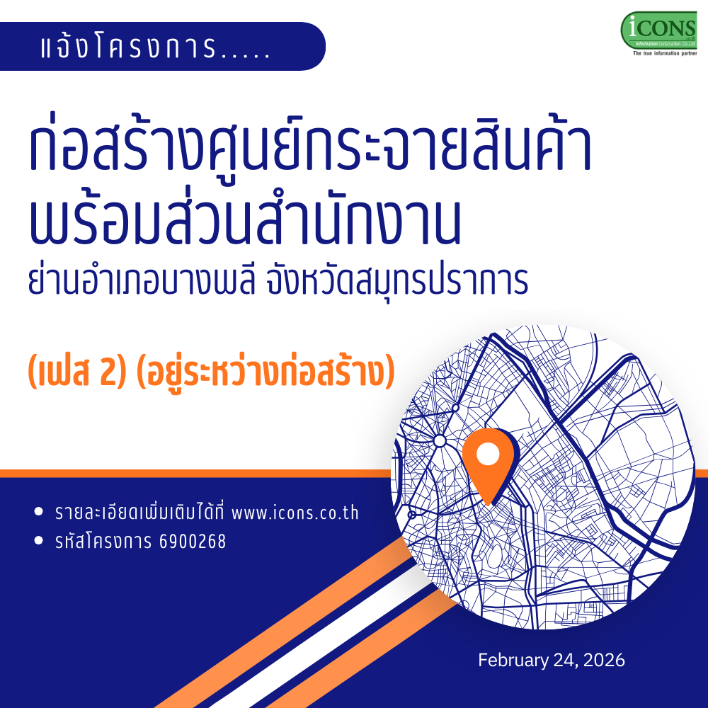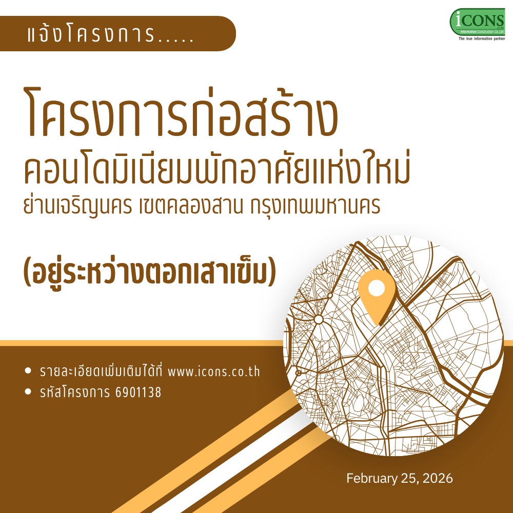 iCONS เป็นบริษัทที่ให้บริการด้านฐานข้อมูลโครงการก่อสร้างใหม่ๆและทันสมัย ที่ใหญ่ที่สุดในประเทศไทย รายงานครอบคลุมทั้งภาครัฐบาลและภาคเอกชน กว่า 0 โครงการ มูลค่ากว่า 0 ล้านบาท ทั้ง 77 จังหวัด ด้วยทีมงานมืออาชีพประสบการณ์กว่า 21 ปี เรารายงานโครงการมากกว่า 118 โครงการต่อวัน และมากกว่า 708 โครงการต่อสัปดาห์