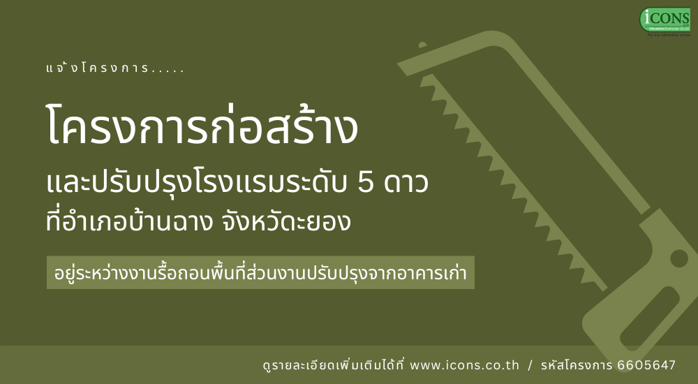 Our information starts at the lightning speed as we can report the construction information right before the project will begin. How it works? Thanks for the iCONS system that keep reporting the proceeds whenever there is any changing in each construction project . The in-depth information covers 14 major categories; Housing, Condominium, Office building, Industrial factory, Hotel, Hospital, Department store or even the government projects like Street, Bridge and other Basic infrastructures.