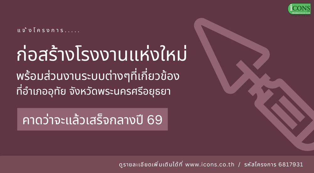 Contractor Wanted: Factory Expansion Project in Samut Sakhon Province. Please Contact 02 810 8892-6 or services@icons.co.th