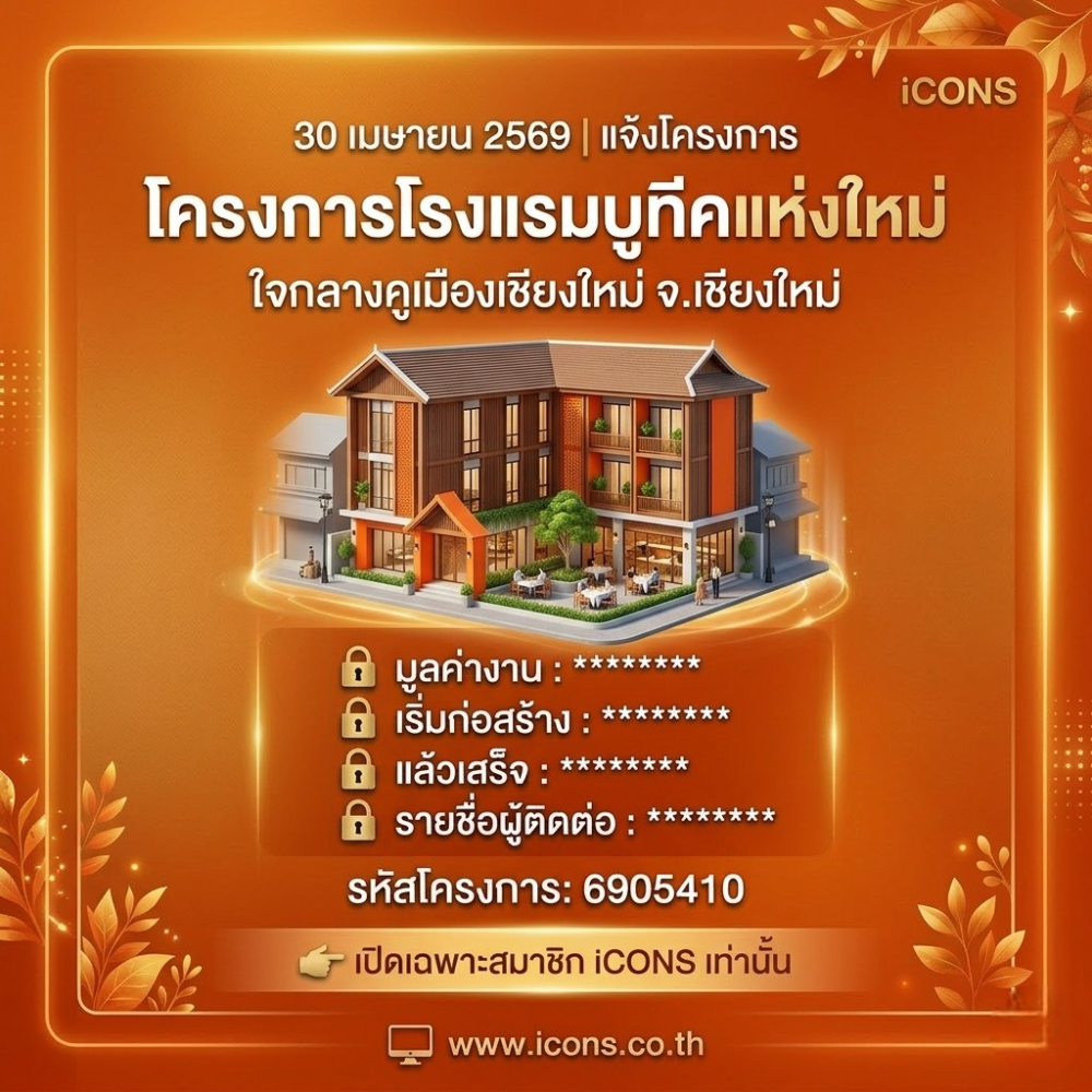 iCONS เป็นบริษัทที่ให้บริการด้านฐานข้อมูลโครงการก่อสร้างใหม่ๆและทันสมัย ที่ใหญ่ที่สุดในประเทศไทย รายงานครอบคลุมทั้งภาครัฐบาลและภาคเอกชน กว่า 0 โครงการ มูลค่ากว่า 0 ล้านบาท ทั้ง 77 จังหวัด ด้วยทีมงานมืออาชีพประสบการณ์กว่า 21 ปี เรารายงานโครงการมากกว่า 132 โครงการต่อวัน และมากกว่า 794 โครงการต่อสัปดาห์
