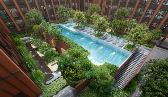 ให้ความรู้สึกอบอุ่นและหรูหรา โอบล้อมด้วยพื้นที่สีเขียวแนวตั้งและแนวนอน เพื่อสร้างบรรยากาศร่มรื่น เป็นส่วนตัว แม้ตั้งอยู่ใจกลางเมือง พร้อมสิ่งอำนวยความสะดวกครบครันแบบ Full Facilities ระดับพรีเมียม อาทิ สระว่ายน้ำระบบเกลือ Half-Olympic ขนาด 25 เมตร พร้อม Jacuzzi และสระเด็ก