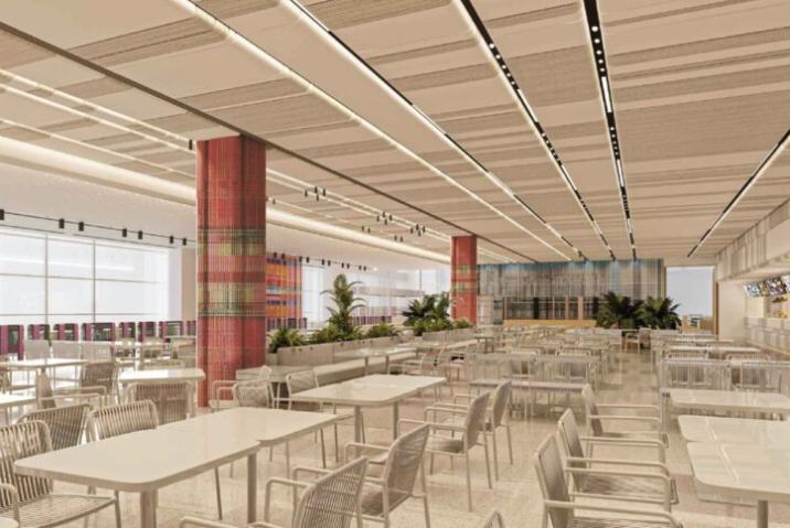 นอกจากไลน์อัพร้านดังแล้ว ศูนย์อาหารใหม่นี้ยังมีจุดเด่นด้านการตกแต่งด้วยโทนสีขาว เทา พร้อมนำเสนอลวดลายของผ้าลายตาหมากรุก หรือผ้าขาวม้า เพื่อสื่อสารถึงวิถีชีวิตของคนไทยในบรรยากาศสบาย ๆ