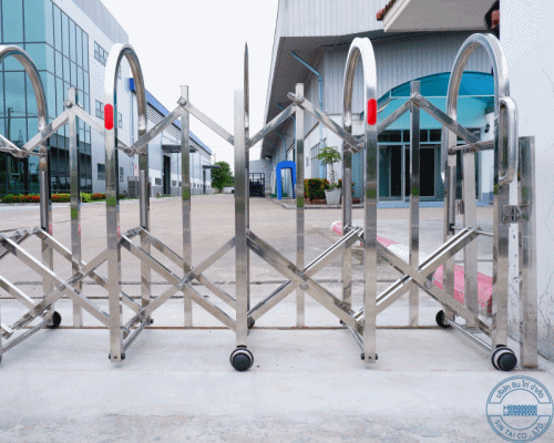 ประตูบานเลื่อนพับเก็บ (Manual) ขนาดความสูง 1.20 m.และความยาวรวม 11.70 m.(ล้อเหล็ก วางราง) ผลิตโดย บริษัท ซินไท่ จำกัด (Sin Tai Co., Ltd.)