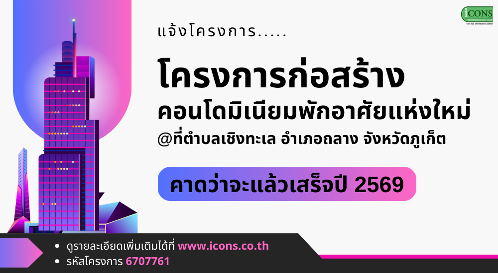 Construction project of new condominium at Amphur Thalang, Phuket is reported on iCONSs database. The construction is expected to finish in the end of the year 2026.