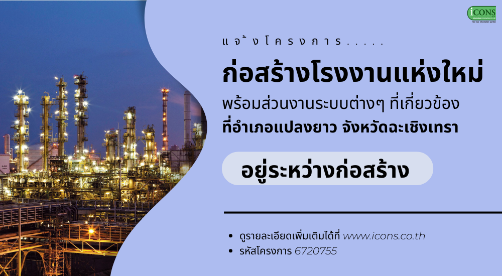 New factory’s construction project at Amphur Plaengyao, Chachoengsao is reported. There will be related systems included. Currently, under construction.