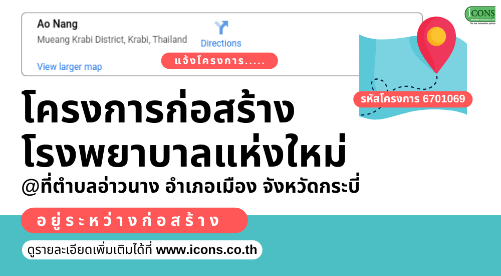 Construction project of new hospital at Tumbol Ao Nang, Amphur Muang, Krabi is reported. Currently, under construction.