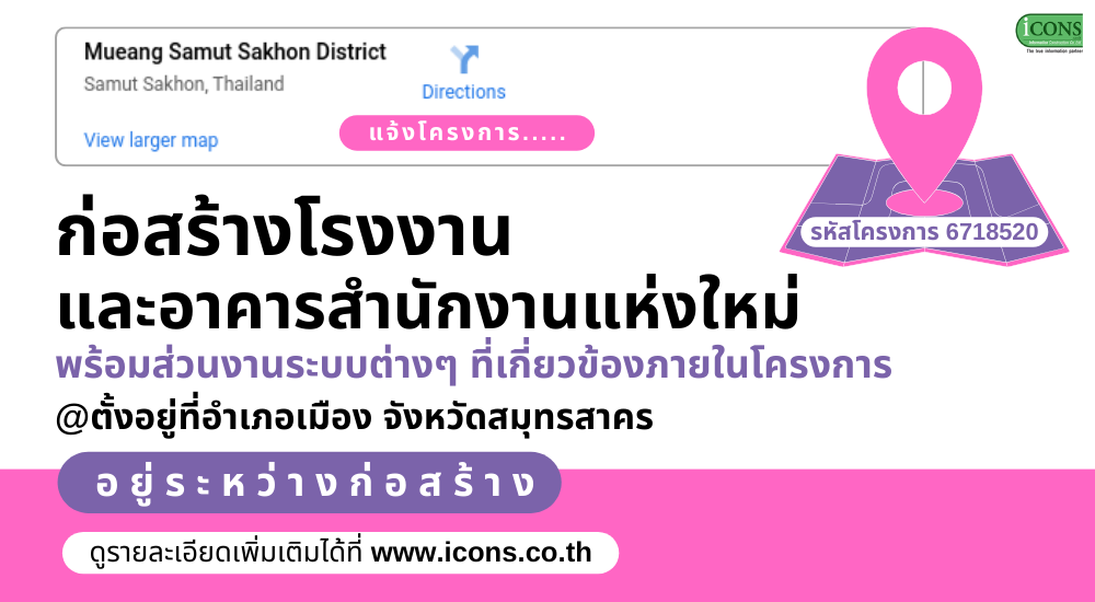 New factory and offices construction project with replated systems are reported. It is located at Amphur Mueang, Samut Sakhon. Currently, under construction.